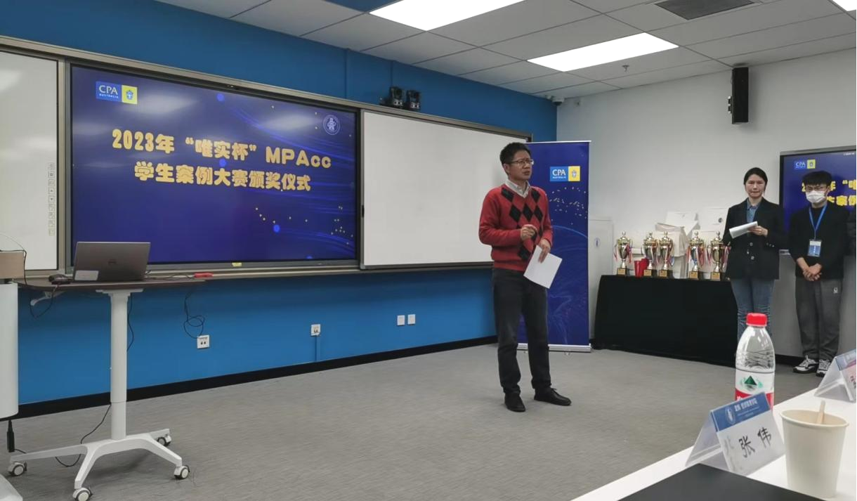11月25日下午,由北航伟德国际victor1946MPAcc教育中心与澳洲注册会计师公会合作举办的2023年“唯实杯”MPAcc学生案例大赛决赛顺利落下帷幕。本届“唯实杯”MPAcc学生案例大赛于10月下旬启动,历时一个月,圆满完成各阶段赛事。2023级MPAcc研究生全员参赛,共计组成16支参赛队伍,经过初赛遴选,10支队伍晋级决赛。决赛以现场答辩方式进行,经过激烈角逐,最终评选出一等奖1队;二等奖2队;三等奖3队。颁奖仪式在北航学院路校区新主楼A1148教室隆重举行。